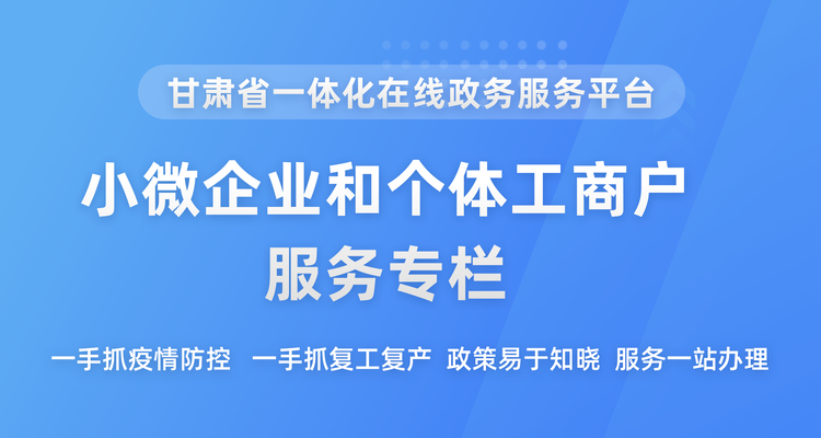 2月26日,中共中央政治局常务委员会召开会议分析当前疫情形势,研究部署近期防控重点工作,指出“要提高复工复产服务便利度,取消不合理审批;把各项惠企政策尽快落实到位,完善政策配套实施办法,在一体化政务平台上建立小微企业和个体工商户服务专栏,使各项政策易于知晓、一站办理。”我省认真贯彻落实党中央、国务院及省委、省政府关于疫情防控的决策部署,及时在甘肃政务服务网推出“小微企业和个体工商户服务”专栏,聚焦惠企政策措施和办事服务系统,助力小微企业和个体工商户有序复工复产。